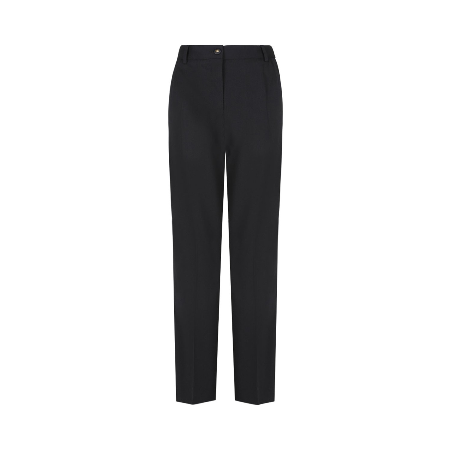 Dolce & Gabbana Black Trousers. Black stretch wool canvas trousers, low waist Kate, French pockets on the front. Welt pockets on the back, zip fastening with button covered in grosgrain and DG logo.