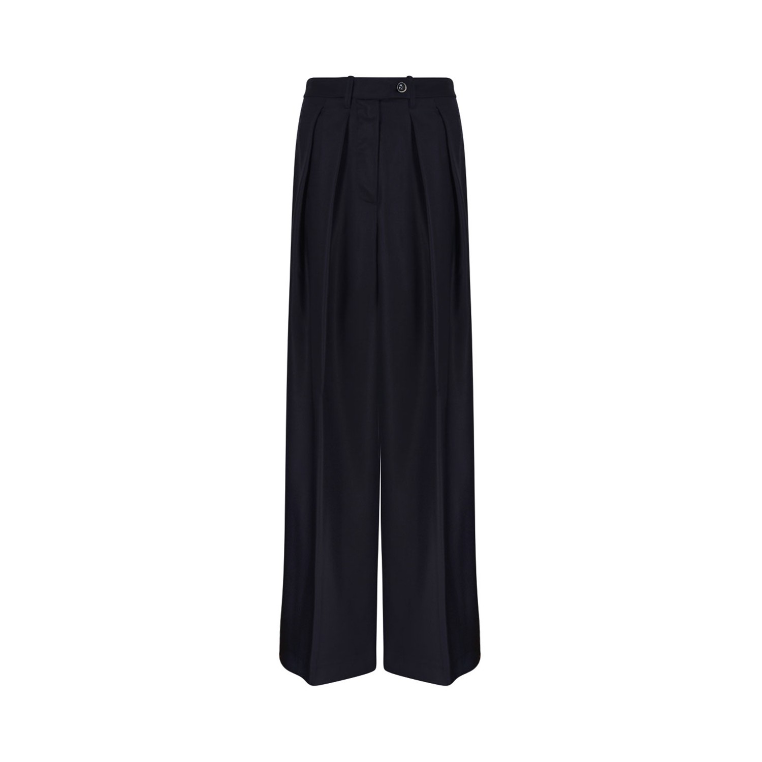 Nine In The Morning Blue Navy Sandra Trousers. Blue navy trousers with two pences, fron button and zip fastening, palazzo leg.