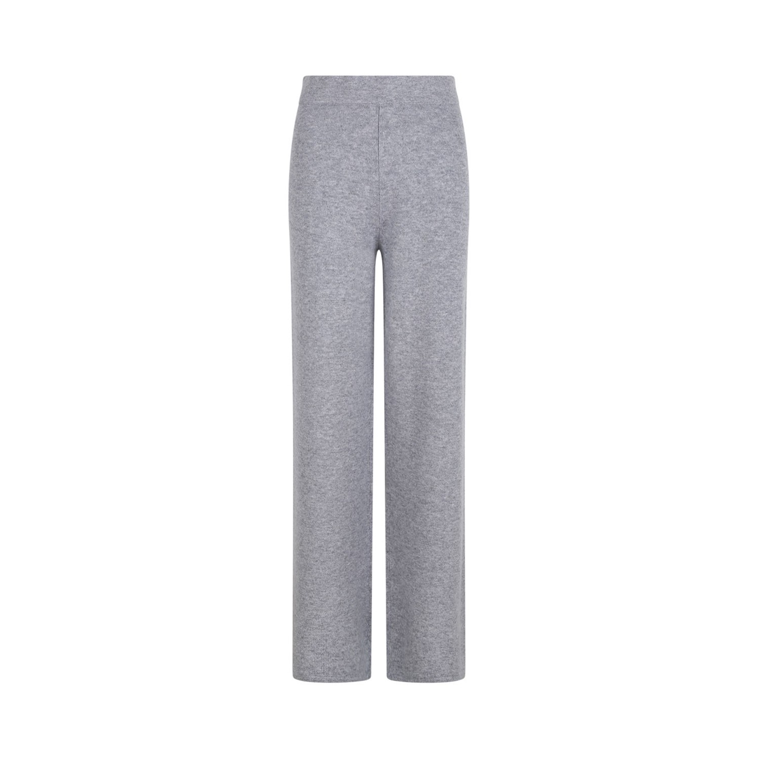 Max Mara Grey Wide-Leg Knit Trousers. Grey wool-blend trousers featuring an elasticated waistband and wide-leg cut. The design offers a relaxed yet elegant silhouette, ideal for comfort without compromising on style. Crafted in a soft, fine knit fabric that coordinates perfectly with matching pieces from the collection.