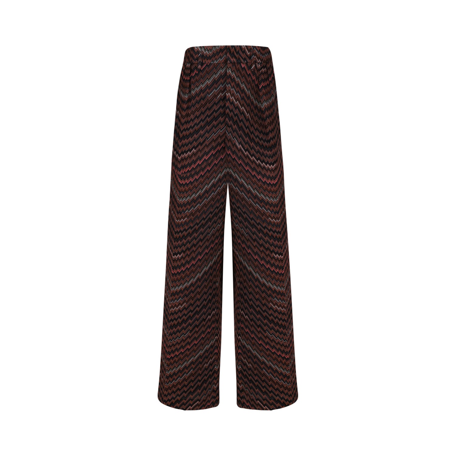 Missoni Black and Brown Zigzag Mid-Rise Tailored Trousers. Black and brown mid-rise tailored trousers with Caperdoni loom work, wavy zigzag pattern.