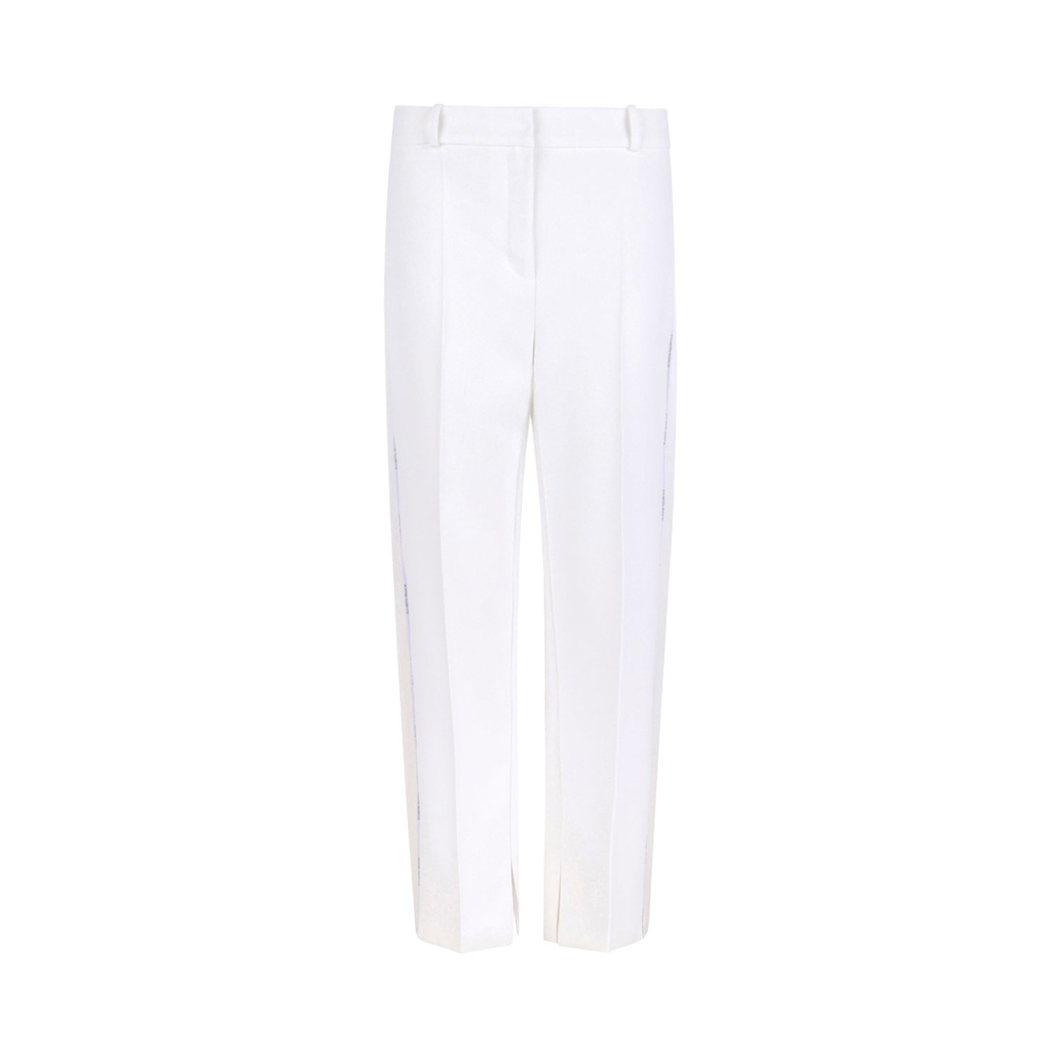 Elisabetta Franchi Ivory White Trousers In Crepe Fabric. Ivory white trousers in crepe fabric with slim fit. They stand out for the tuxedo-inspired satin pleating and logo piping along the hips for an interesting play on contrasts. Maxi belt with loops, welts on the back.