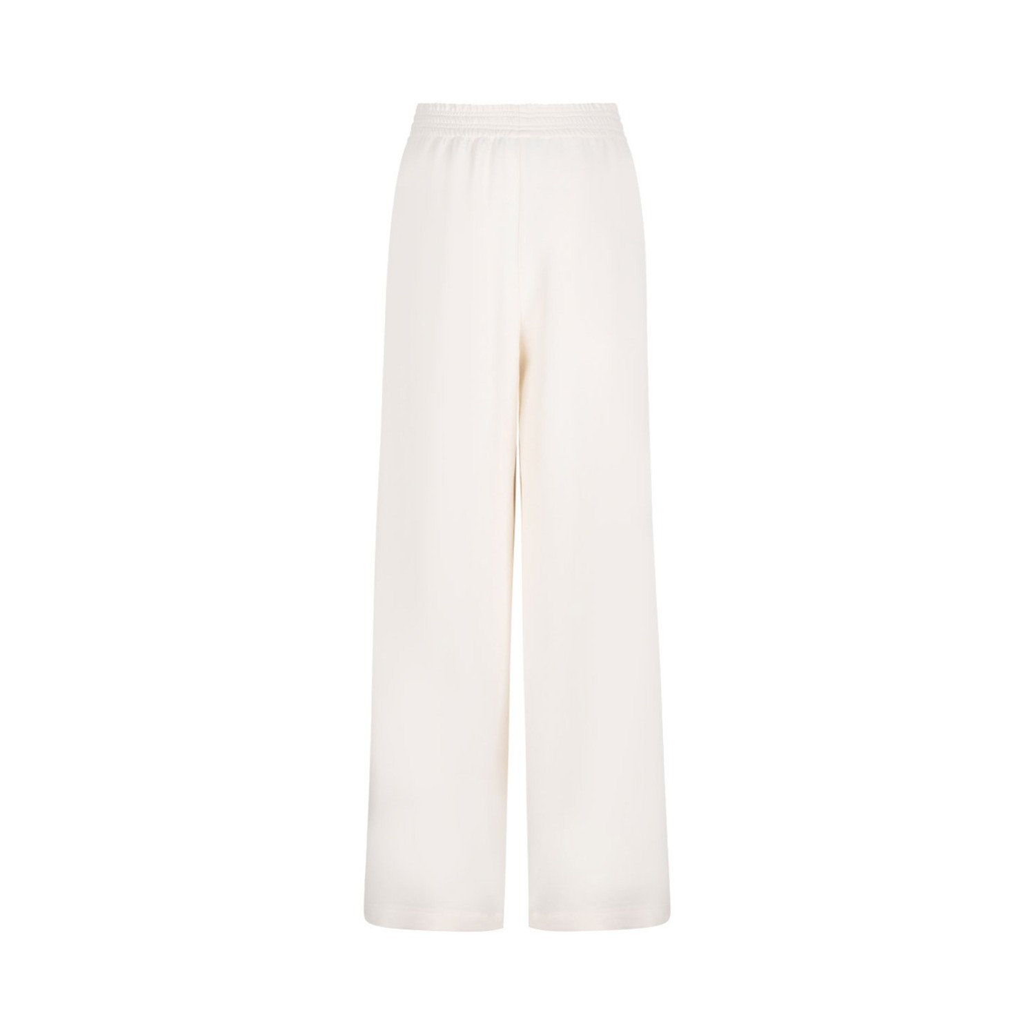 Fabiana Filippi White Amelia Cady Trousers. Crafted from a flowing viscose cady fabric, these wide-leg trousers offer the perfect balance of comfort and elegance, accentuated by the practical elastic waistband. They are entirely made in Italy using sustainable processes.