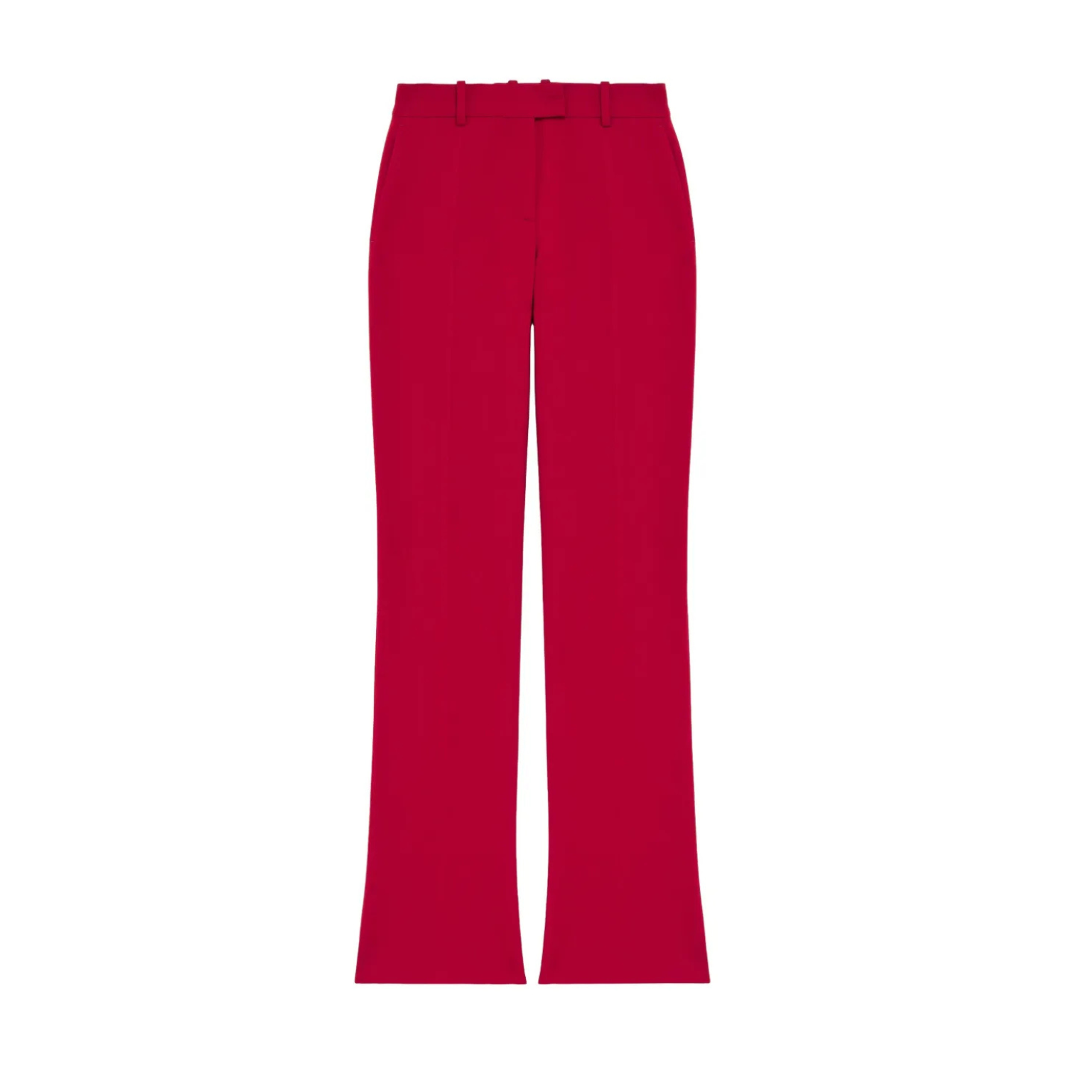 Alexander McQueen Grain De Poudre Fabric Trousers. Crimson grain de poudre fabric trousers with passers-by, hidden closure and flared hem.