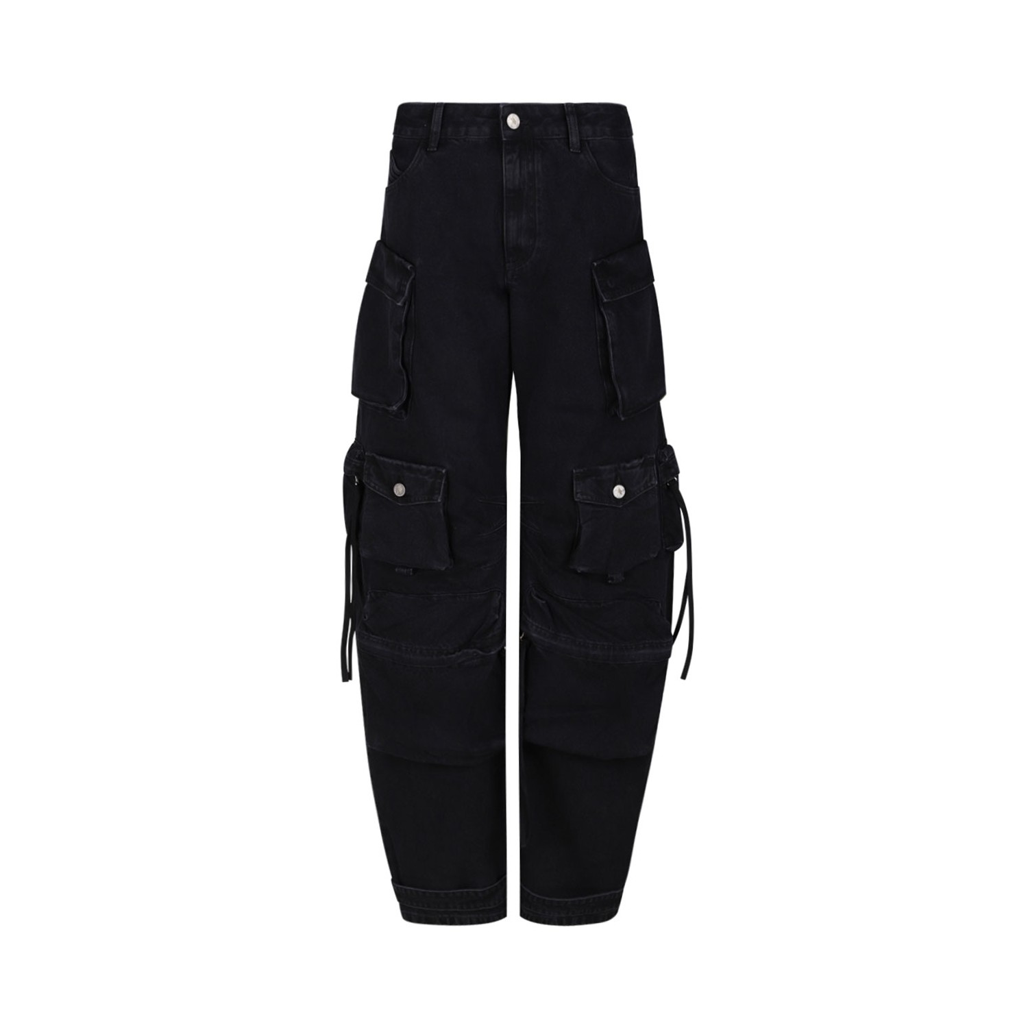 The Attico Black Fern Fade Long Pants. "Fern" long pants in black fade american fleece with multi-pockets and folded pocket with front button and zip fastening.
