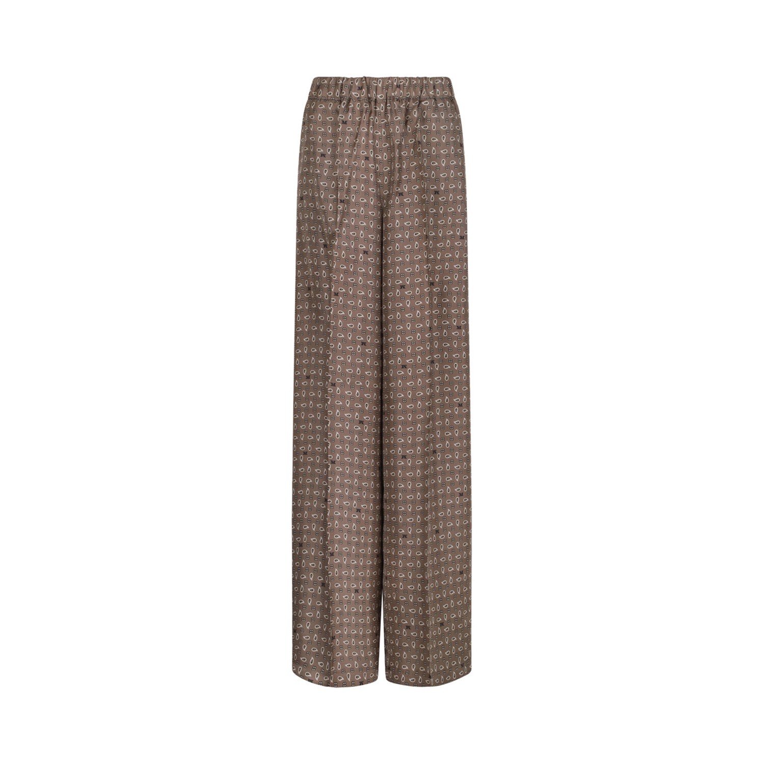Max Mara Mud Printed Silk Trousers. Mud wide trousers in pure silk twill with wide leg and pressed crease. Elasticated waist and French pockets on the hips.