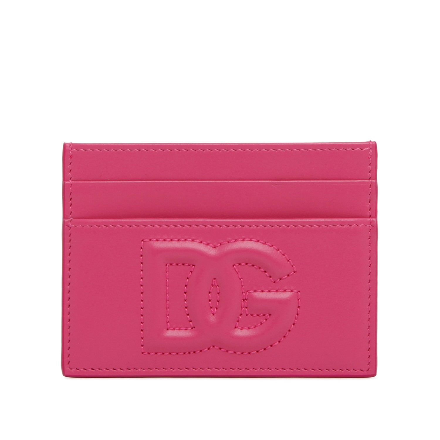 Dolce & Gabbana Hot Pink Embossed Logo Cardholder. Hot pink calf leather cardholder, embossed logo to the front, card slots, rectangle frame.