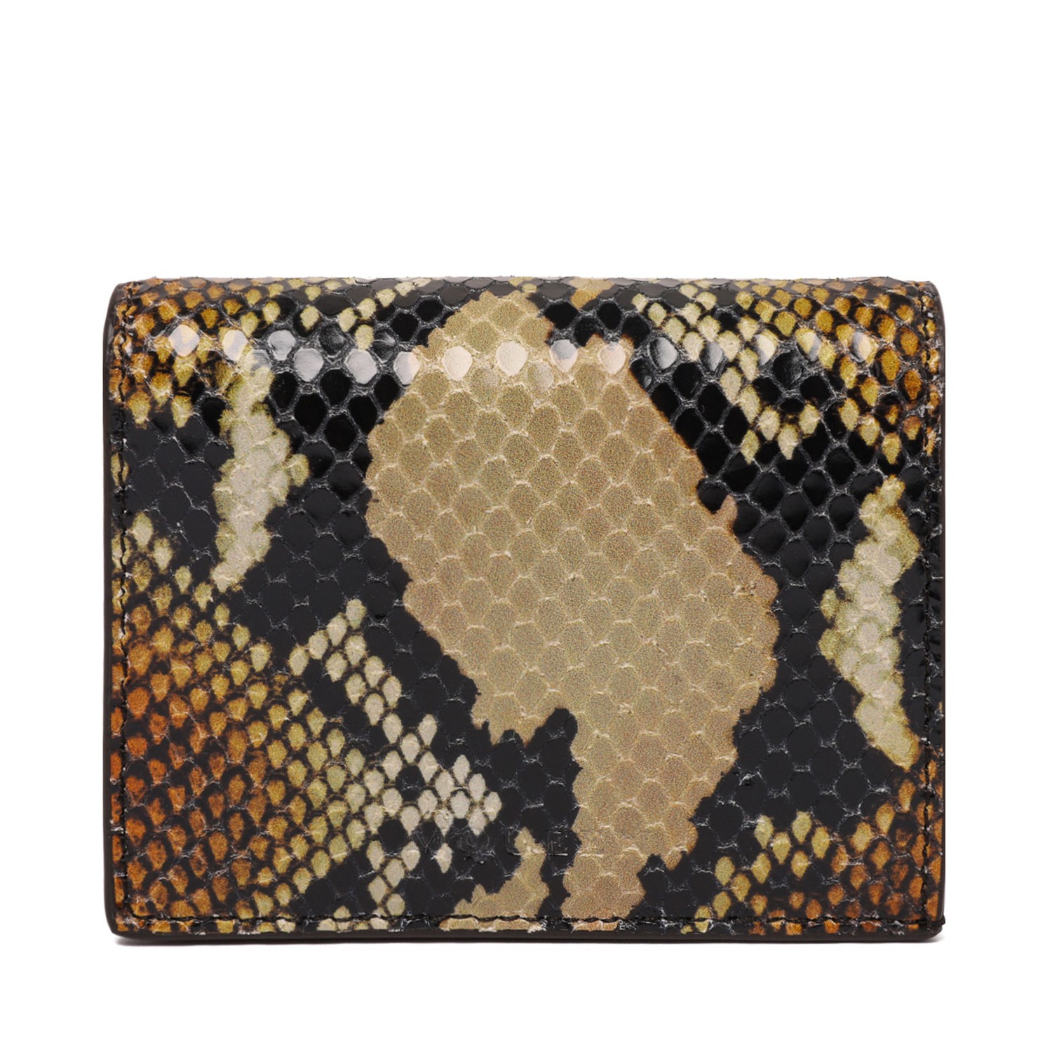 Alexander McQueen Snake Print Leather Wallet.Multicolor wallet in glossy snake-embossed leather with tonal stitching, tri-fold silhouette, snap button closure, interior card slots, bill compartment, and coin pocket.