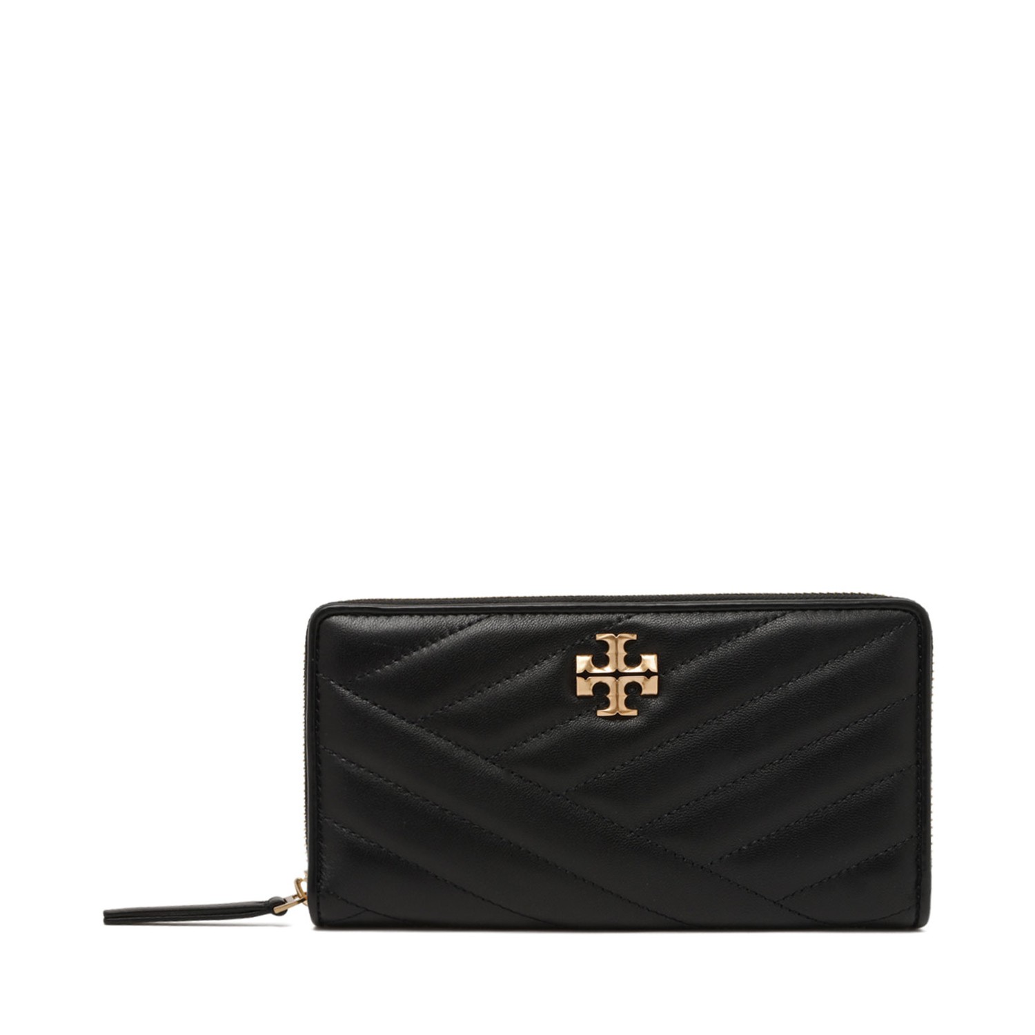Tory Burch Black Kira Chevron Zip Continental Wallet. Black napa leather wallet with zipper closure, 2 bill pockets, 8 card pockets, 1 center zipper divider, quilting technique.