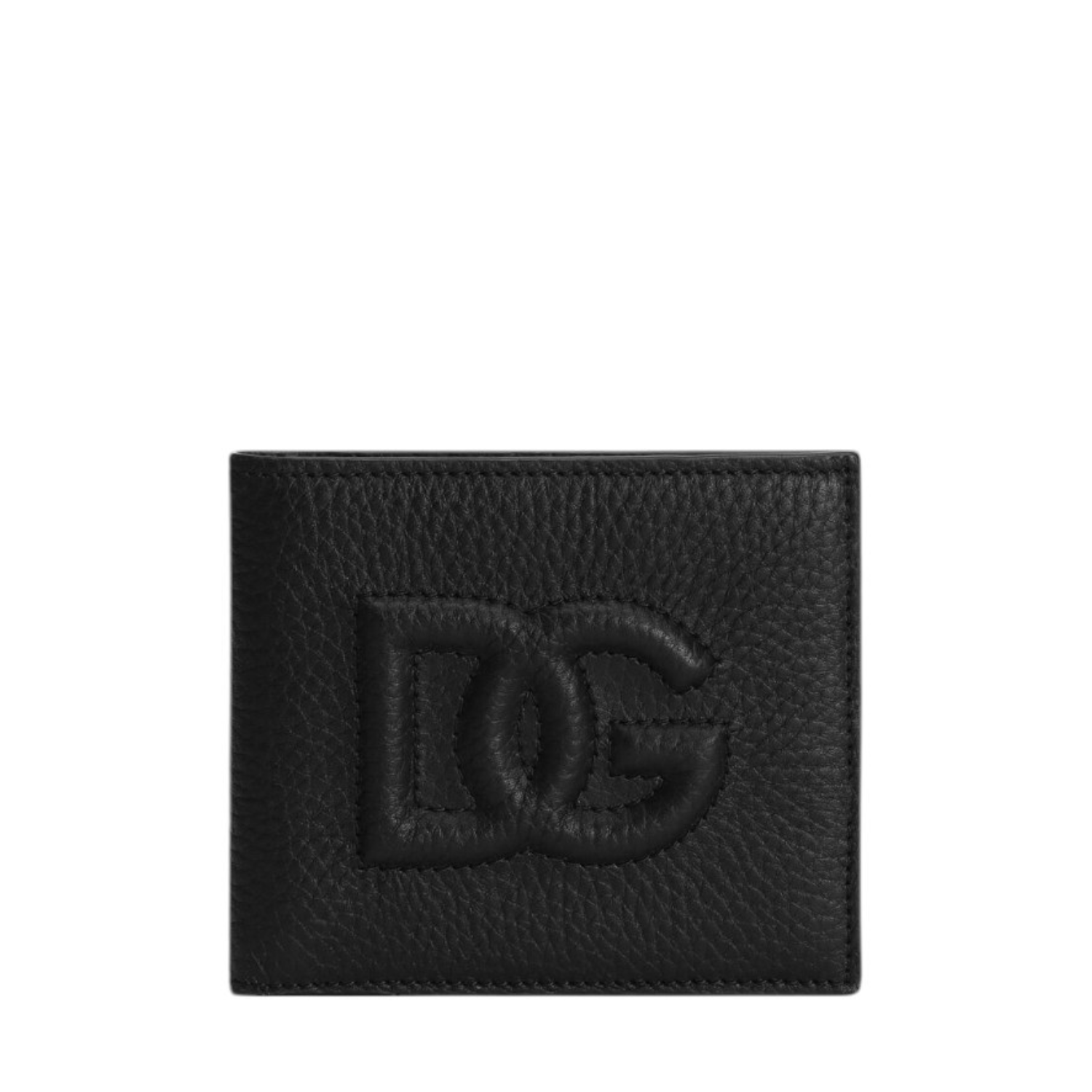 Dolce & Gabbana Black Bifold Wallet. Black bifold wallet made of deer-print calfskin and personalized with a quilted DG logo with a three-dimensional effect.
