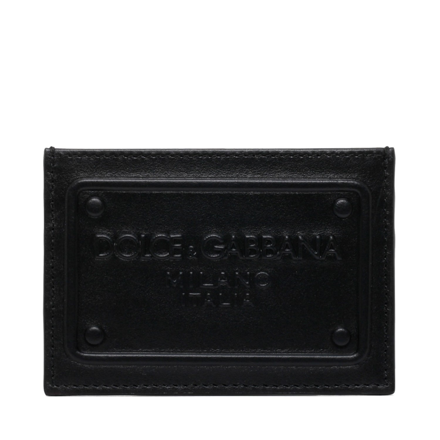 Dolce & Gabbana Black Calf Leather Logo Plaque Cardholder. Black calf leather cardholder, two credit card slots and one on top, three dimensional logo plate.
